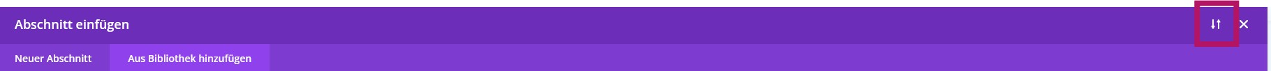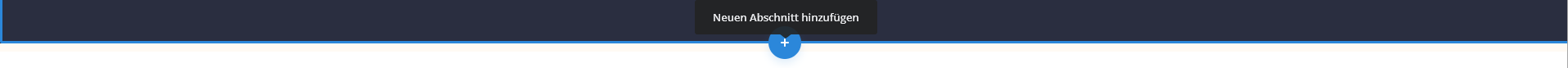 - Fahre mit der Maus an die Stelle, bis Du die blauen Sektion-Elemente siehst, und klicke dort auf das blaue Plus-Symbol für eine neue Sektion.