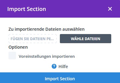 Klicke auf „Datei auswählen“ und wähle die .json-Datei der Sektion, die Du aus dem Website-Club heruntergeladen hast.